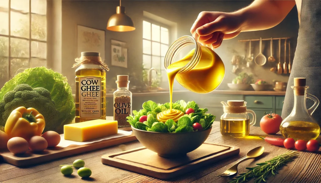 Additionally, some people prefer cow ghee because it’s considered to be more easily digestible, making it a better option for individuals with sensitive stomachs. Plant-based oils, on the other hand, such as olive oil or sunflower oil, have a different composition of fats and are lower in the fat-soluble vitamins that ghee contains.
